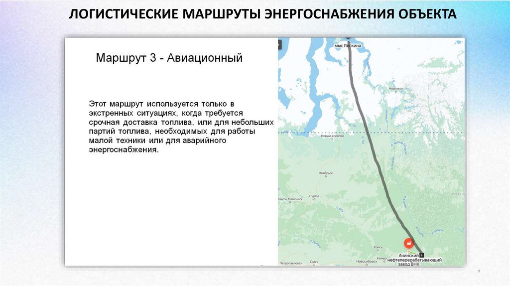 ЛОГИСТИЧЕСКИЕ МАРШРУТЫ ЭНЕРГОСНАБЖЕНИЯ ОБЪЕКТА14.