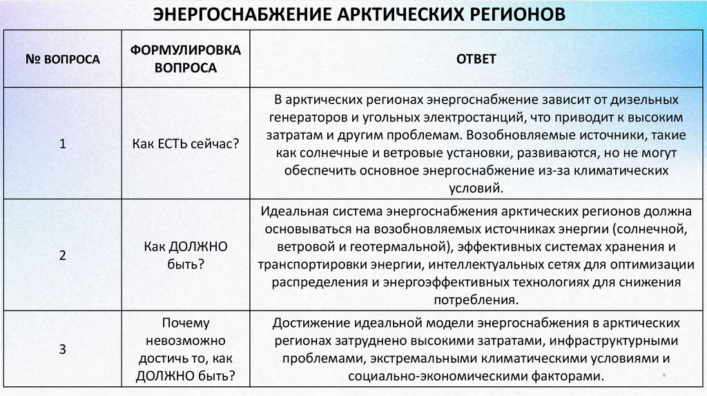 ЭНЕРГОСНАБЖЕНИЕ АРКТИЧЕСКИХ РЕГИОНОВФОРМУЛИРОВКА