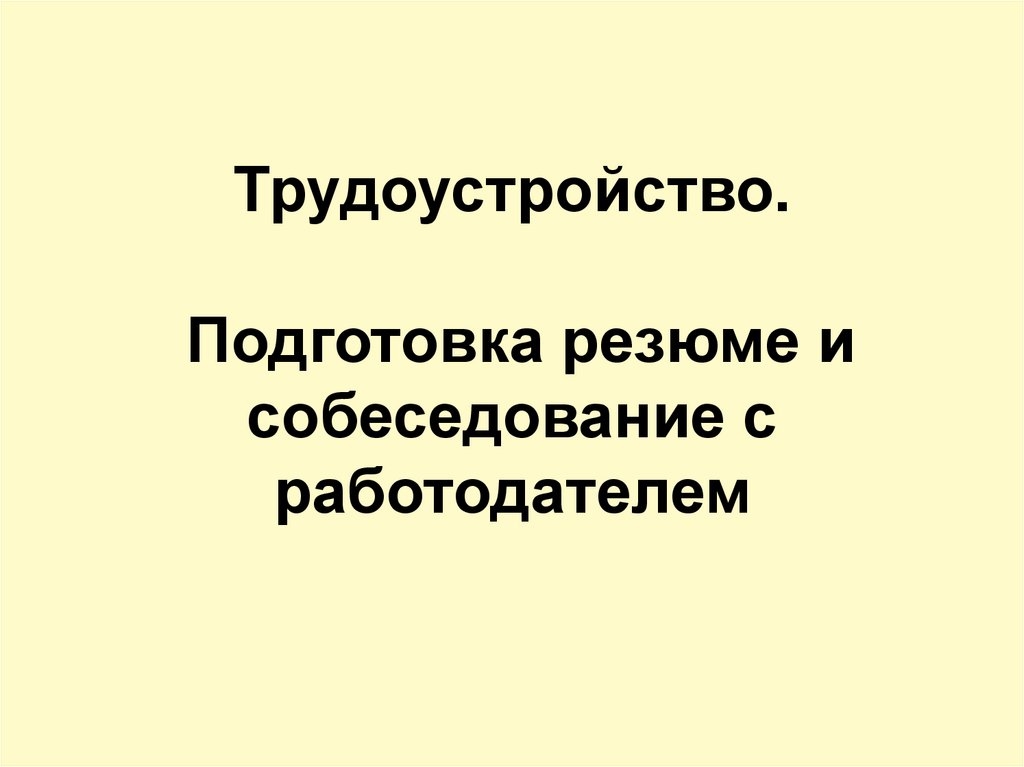 Трудоустройство. Подготовка резюме и собеседование с работодателем