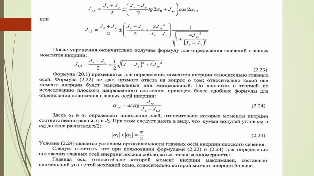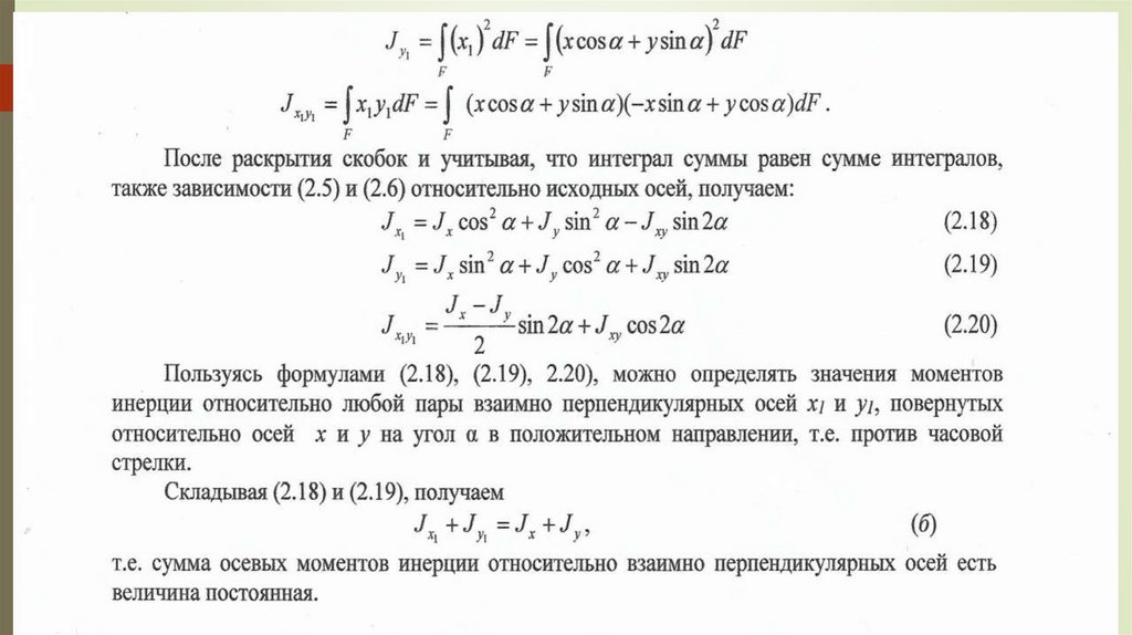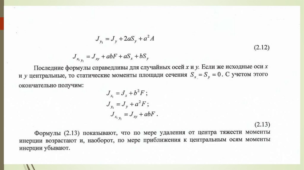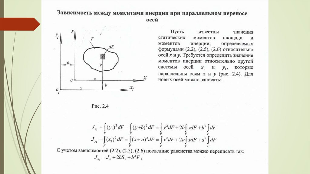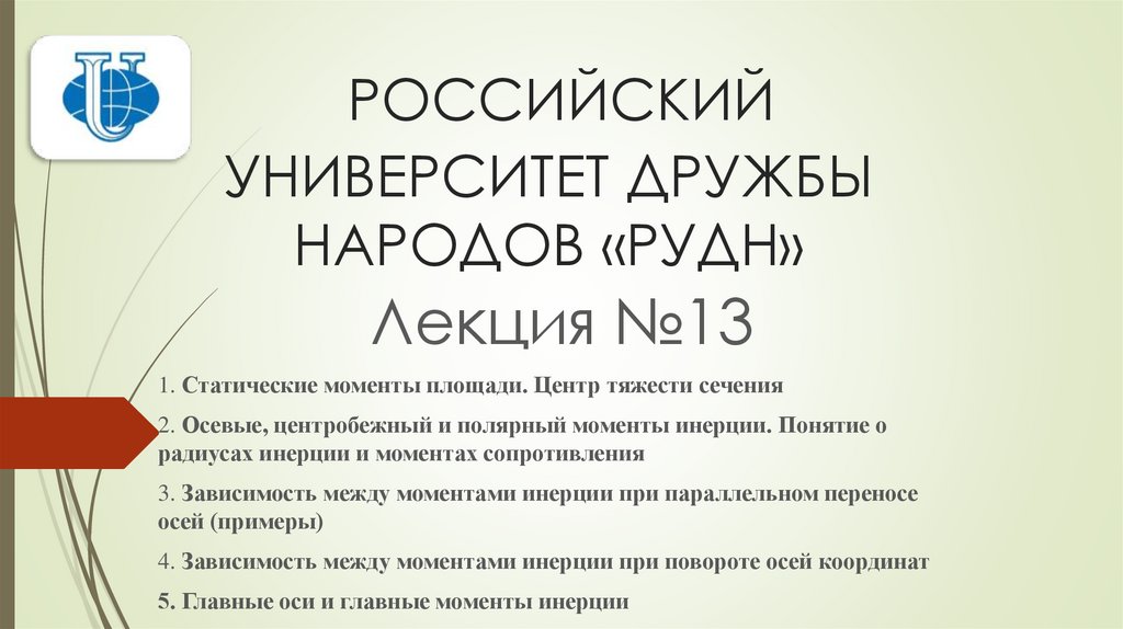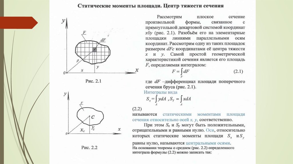 Статические моменты площади. Центр тяжести сечения. Осевые, центробежный и полярный моменты инерции. Лекция №13