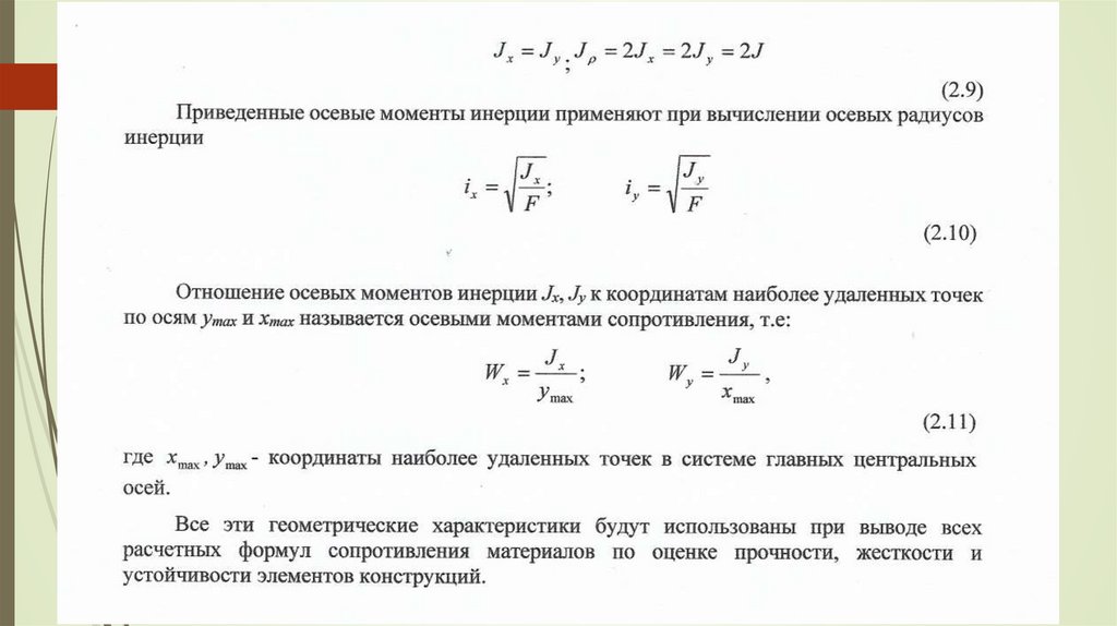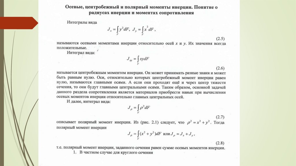 2. Осевые, центробежный и полярный моменты инерции. Понятие о