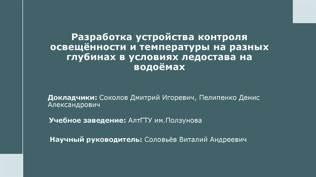 Разработка устройства контроля освещённости и температуры на разных глубинах в условиях ледостава на водоёмах