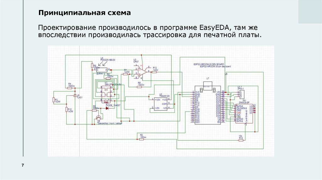 Принципиальная схемаПроектирование производилось в программе EasyEDA, там же