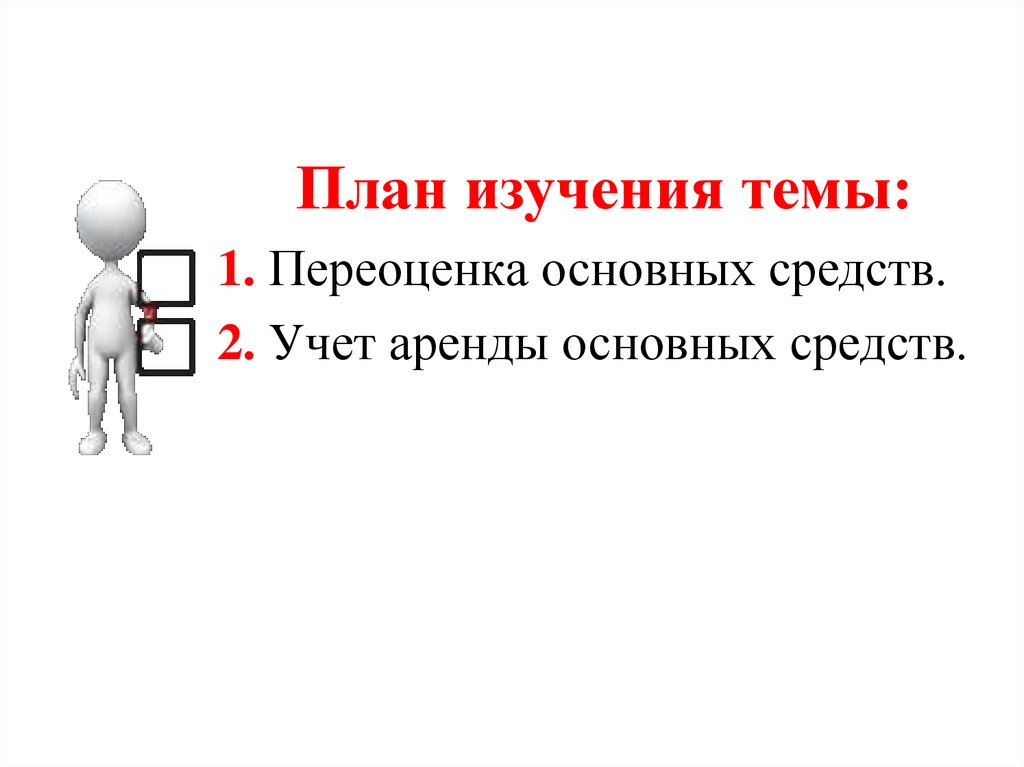 План изучения темы:1. Переоценка основных средств.