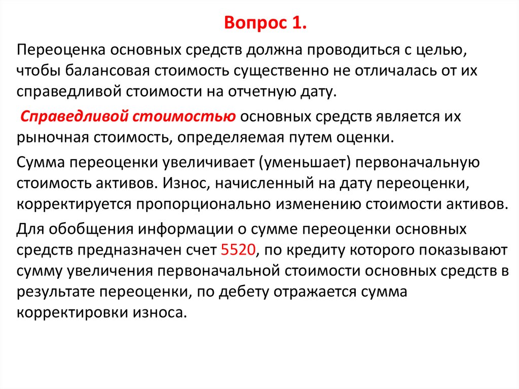 Вопрос 1.Переоценка основных средств должна проводиться с целью,
