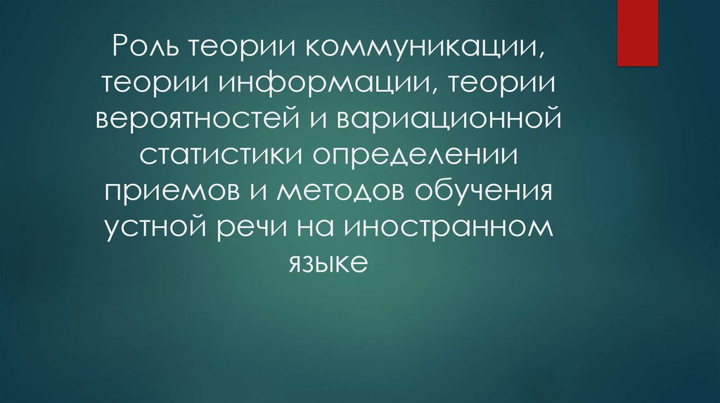 1. Роль теории коммуникации, теории информации, теории вероятностей и вариационной статистики определении приемов и методов обучения устной