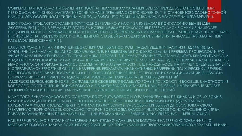 СОВРЕМЕННАЯ ПСИХОЛОГИЯ ОБУЧЕНИЯ ИНОСТРАННЫМ ЯЗЫКАМ ХАРАКТЕРИЗУЕТСЯ ПРЕЖДЕ ВСЕГО ПОСТЕПЕННЫМПЕРЕХОДОМ НА ФИЗИКО- МАТЕМАТИЧЕСКИЙ АНАЛИЗ ПРЕДМЕТА СВОЕГО ИЗУЧЕНИЯ, Т. Е. СТАНОВИТСЯ УСЛОВНО ТОЧНОЙ