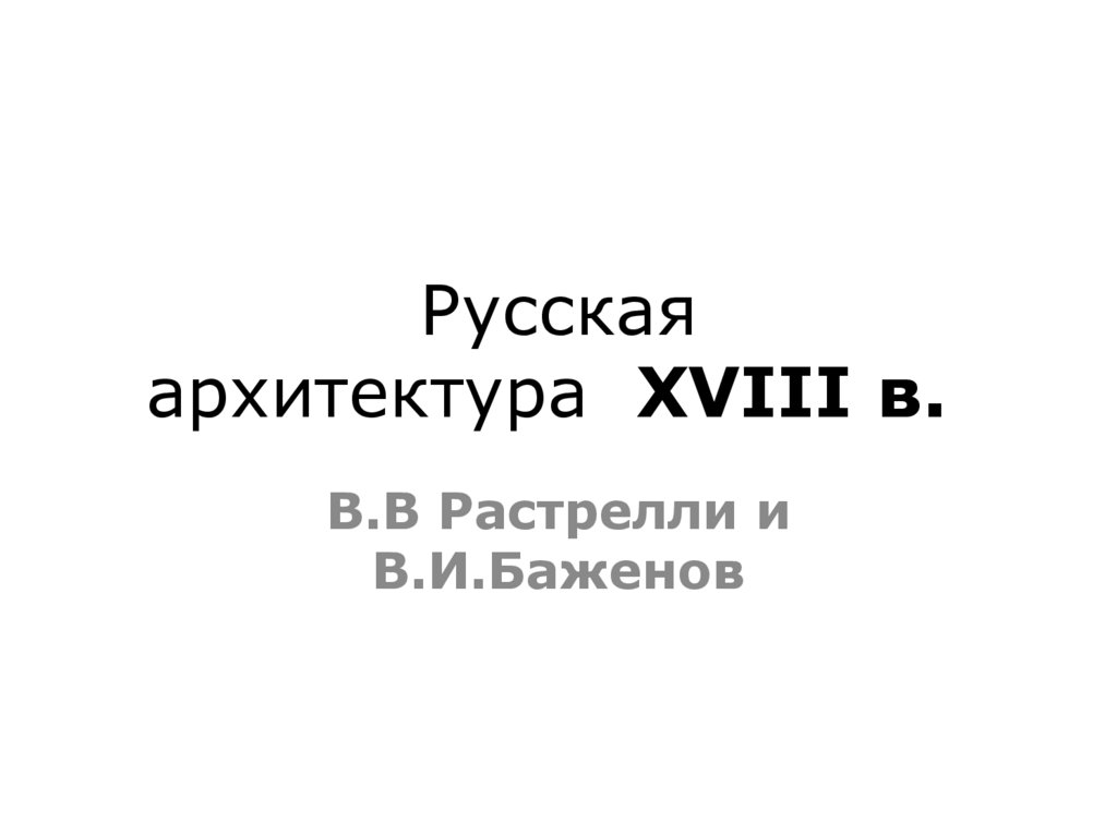 Русская архитектура XVIII в. (В.В. Растрелли и В.И. Баженов)