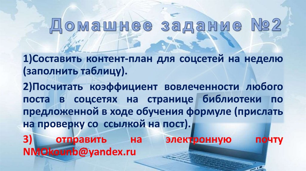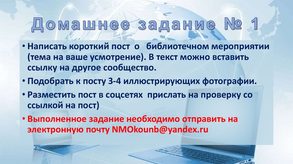 • Написать короткий пост о библиотечном мероприятии(тема на ваше усмотрение). В текст можно вставить