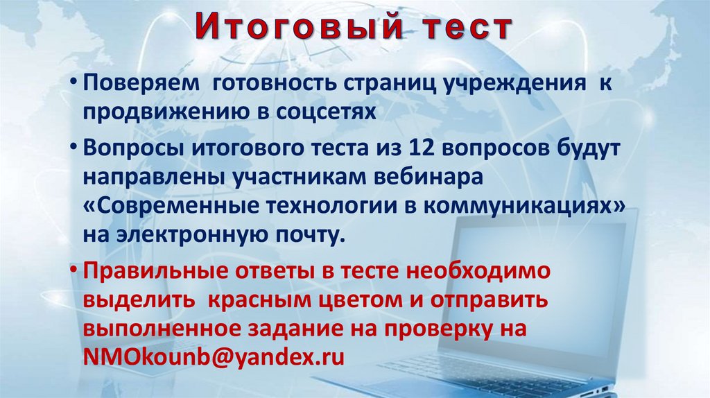 • Поверяем готовность страниц учреждения кпродвижению в соцсетях