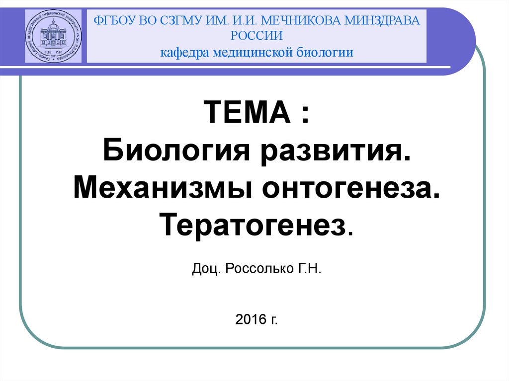 Биология развития. Механизмы онтогенеза. Тератогенез