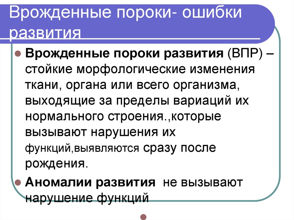 Врожденные пороки развития (ВПР) –стойкие морфологические изменения