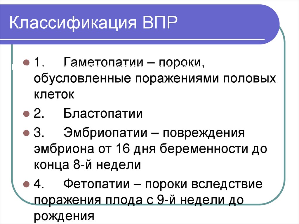 нарушения выделяют гаметопатии, бластопатии, эмбриопатии и