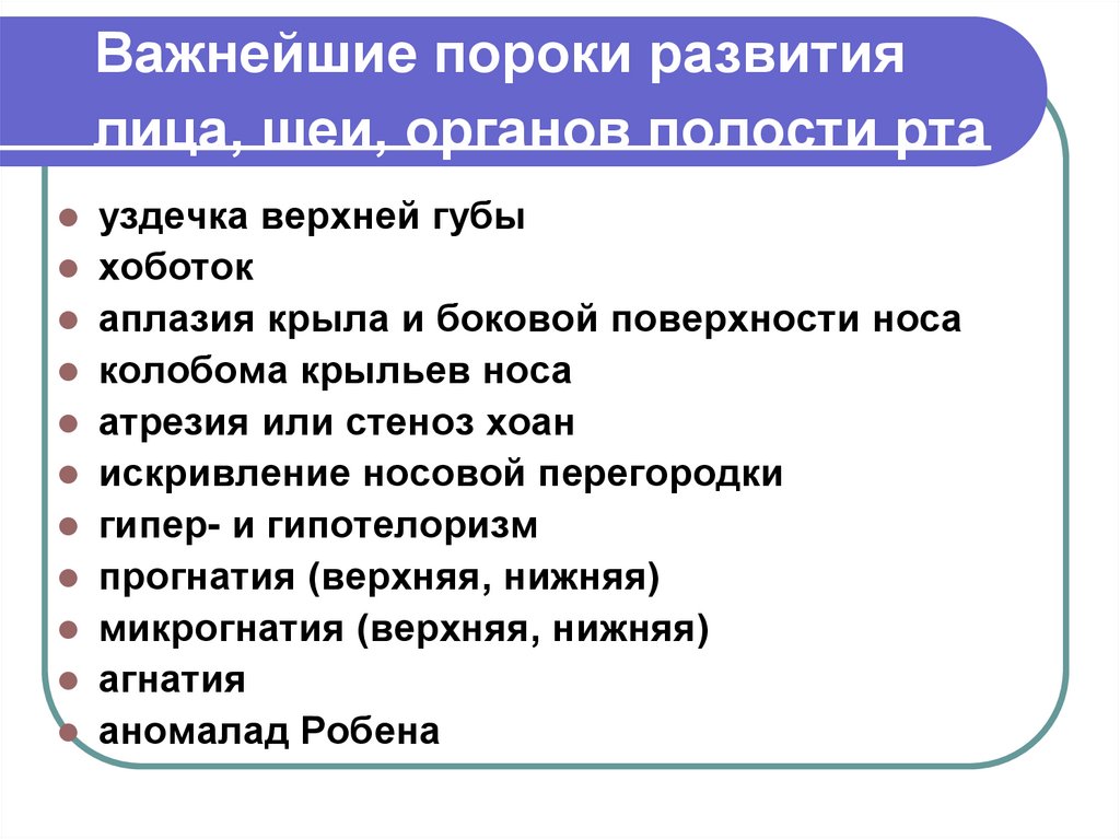 22. Важнейшие пороки развития лица, шеи, органов полости рта