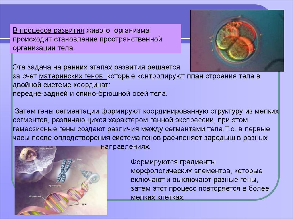 часы после оплодотворения система генов расчленяет зародыш в разных