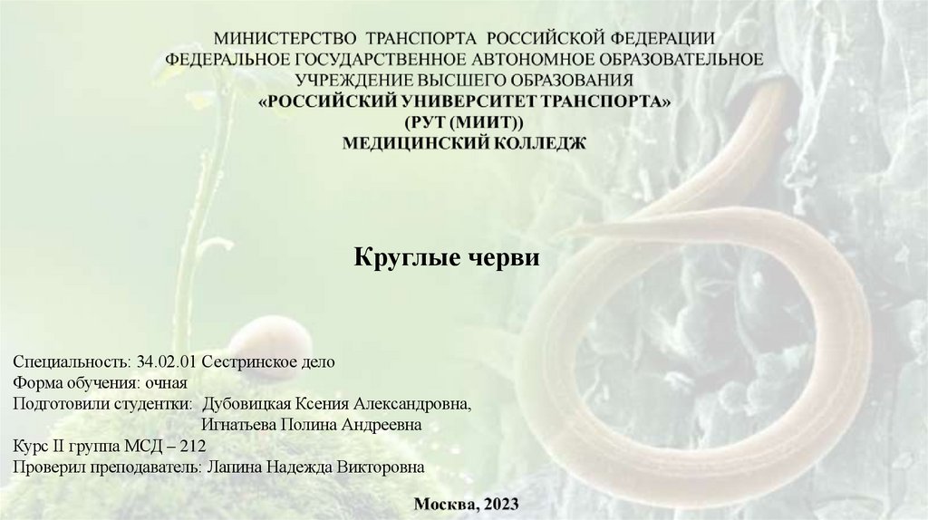 Круглые червиСпециальность: 34.02.01 Сестринское дело
