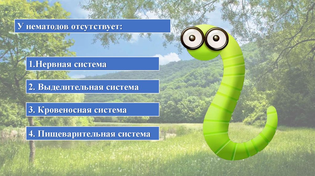 У нематодов отсутствует:1.Нервная система
