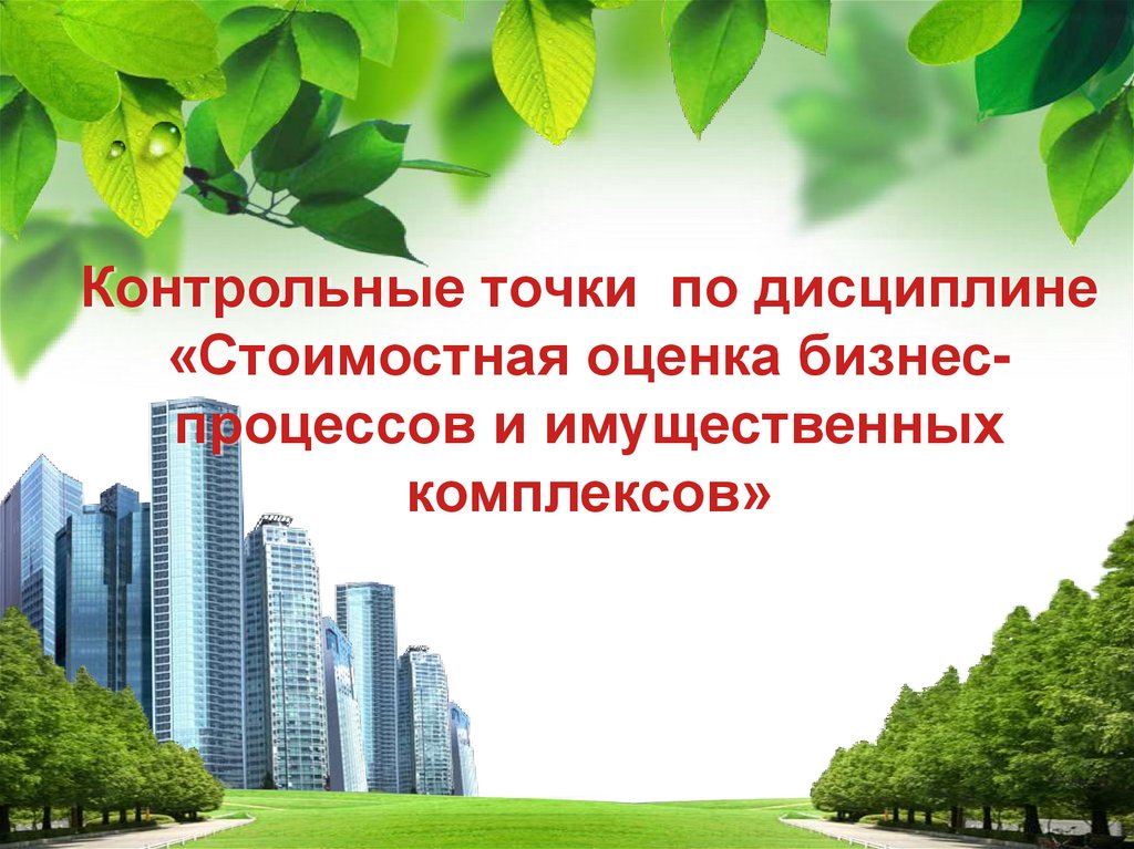 Контрольные точки по дисциплине «Стоимостная оценка бизнес-процессов и имущественных комплексов»