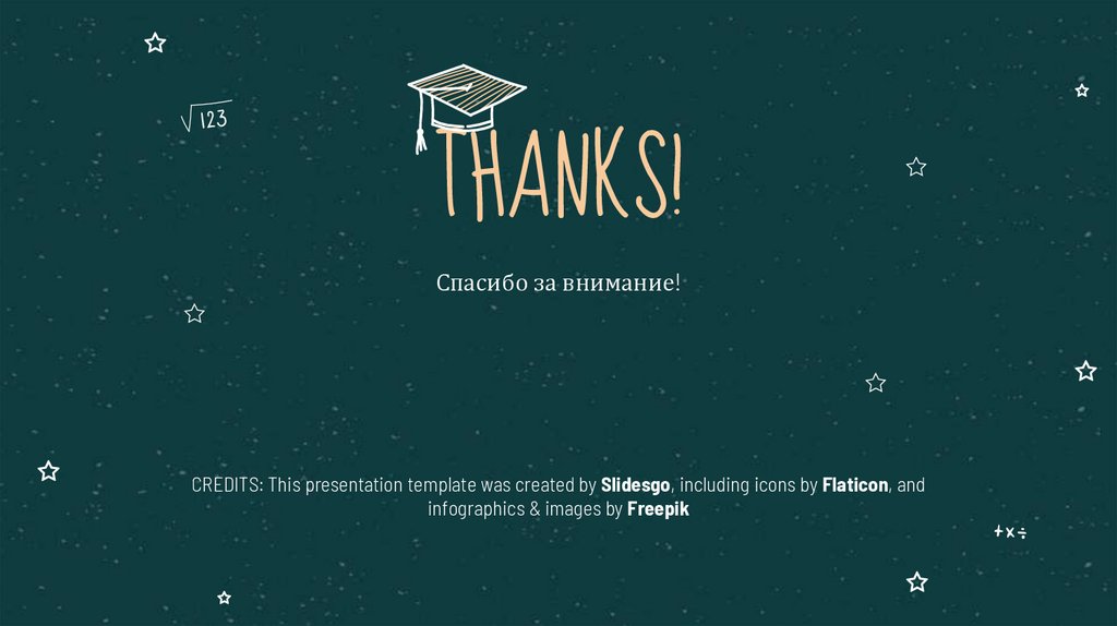 Спасибо за внимание!CREDITS: This presentation template was created by Slidesgo, including icons by Flaticon, and