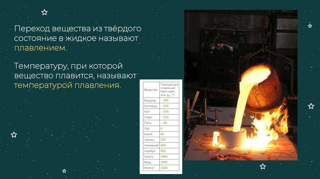 3. Переход вещества из твёрдого состояние в жидкое называют плавлением.