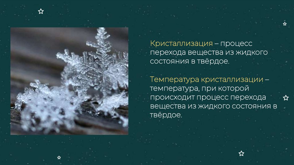 4. Кристаллизация – процесс перехода вещества из жидкого состояния в твёрдое.