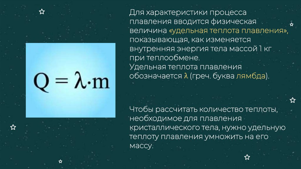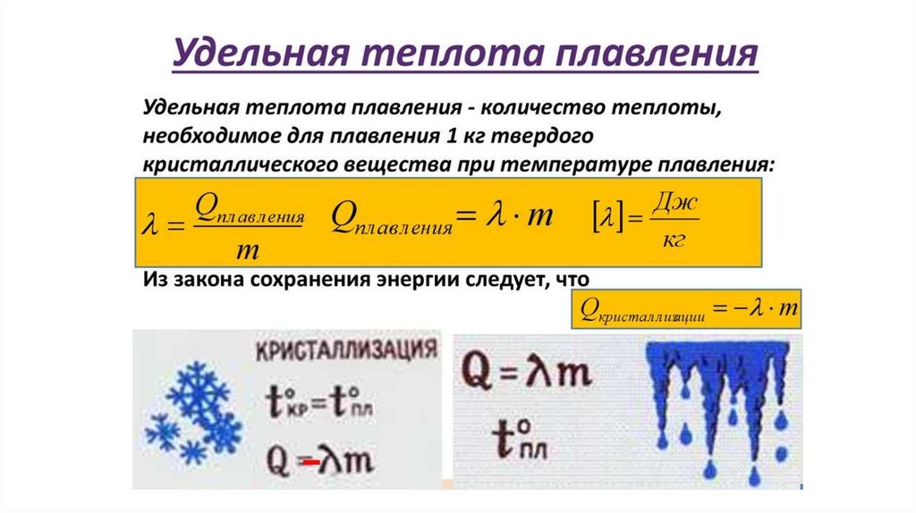 8. Для характеристики процесса плавления вводится физическая величина «удельная теплота плавления», показывающая, как изменяется