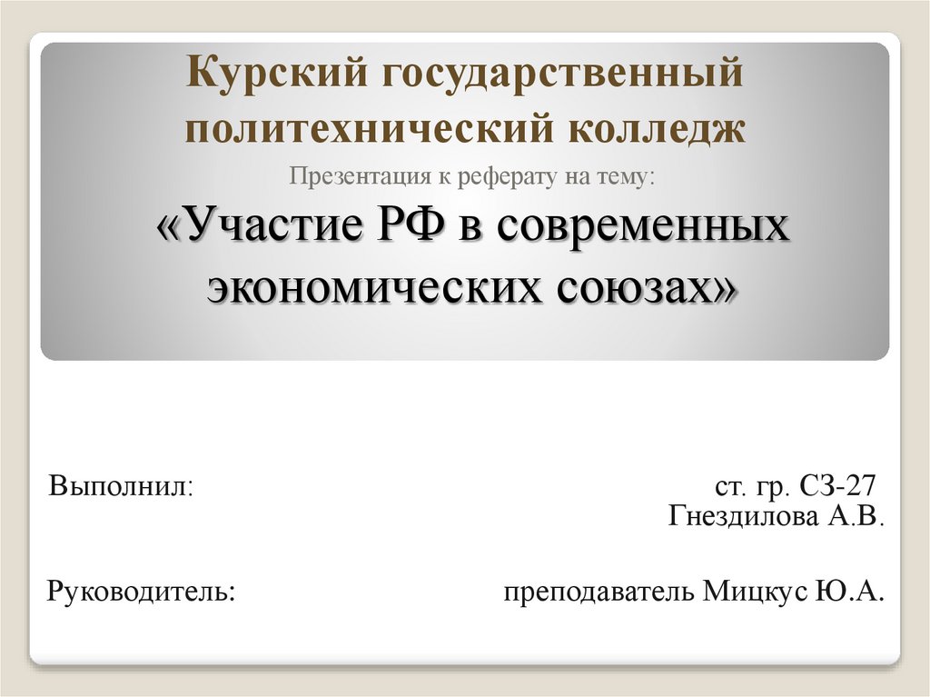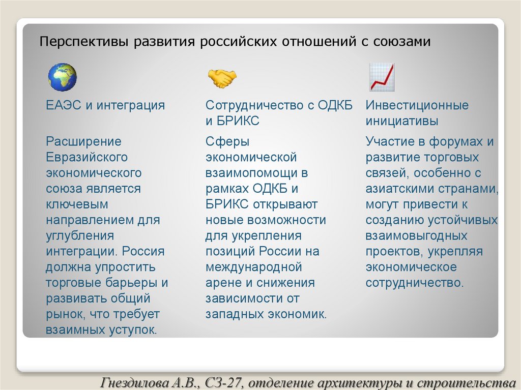 Перспективы развития российских отношений с союзамиЕАЭС и интеграция