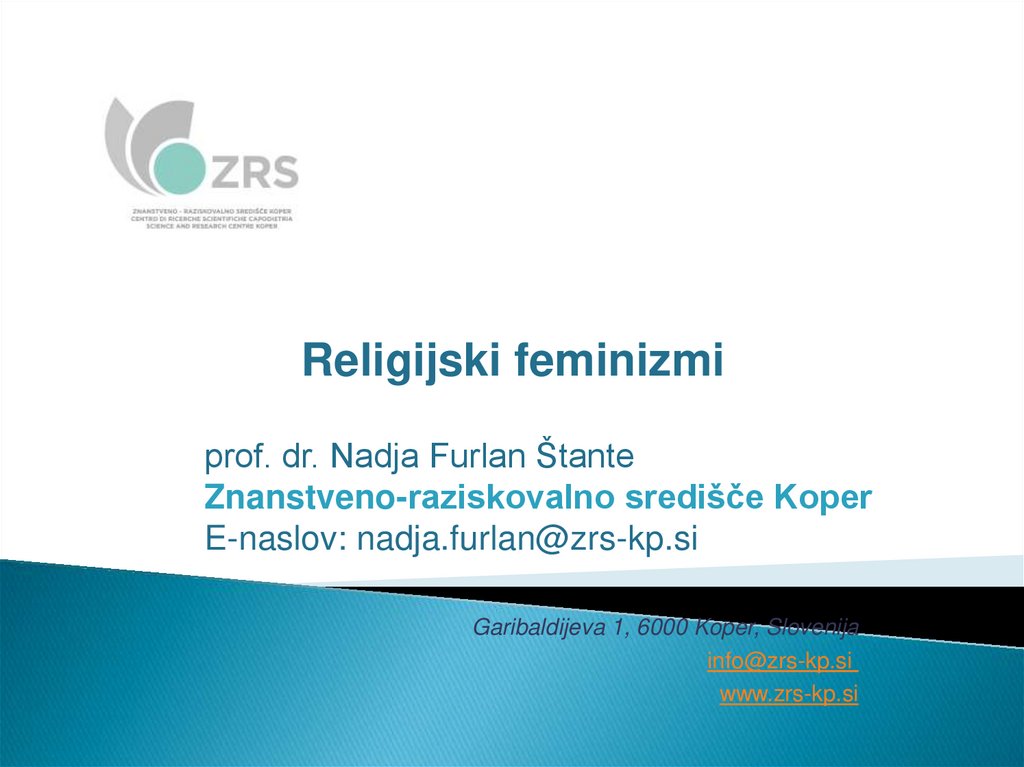 Religijski feminizmiprof. dr. Nadja Furlan Štante