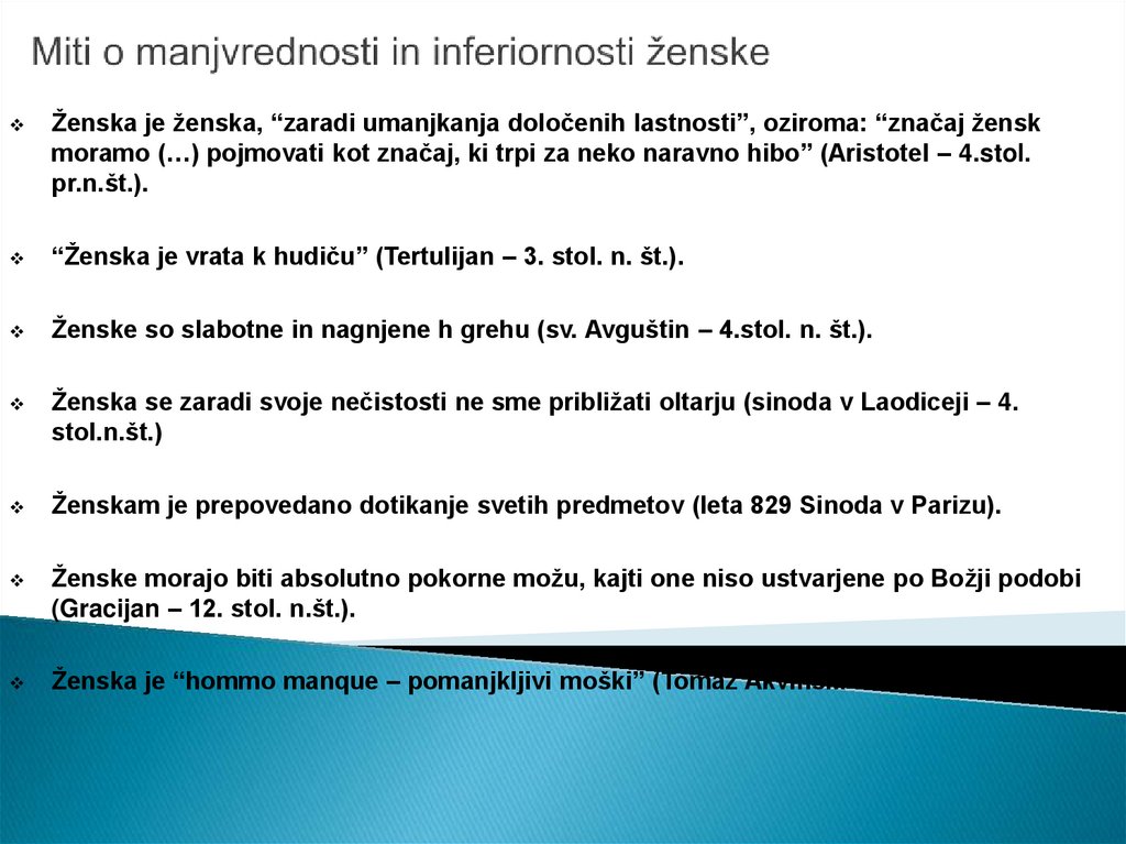 Ženska je “hommo manque – pomanjkljivi moški” (Tomaž Akvinski – 13. stol. n.št.).