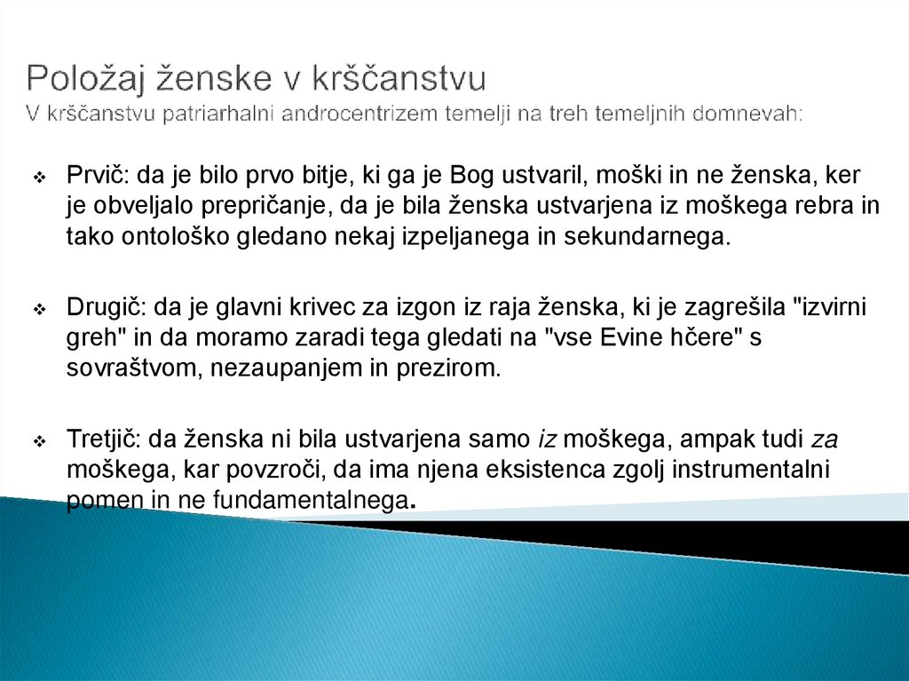 Ženske so slabotne in nagnjene h grehu (sv. Avguštin – 4.stol. n. št.).