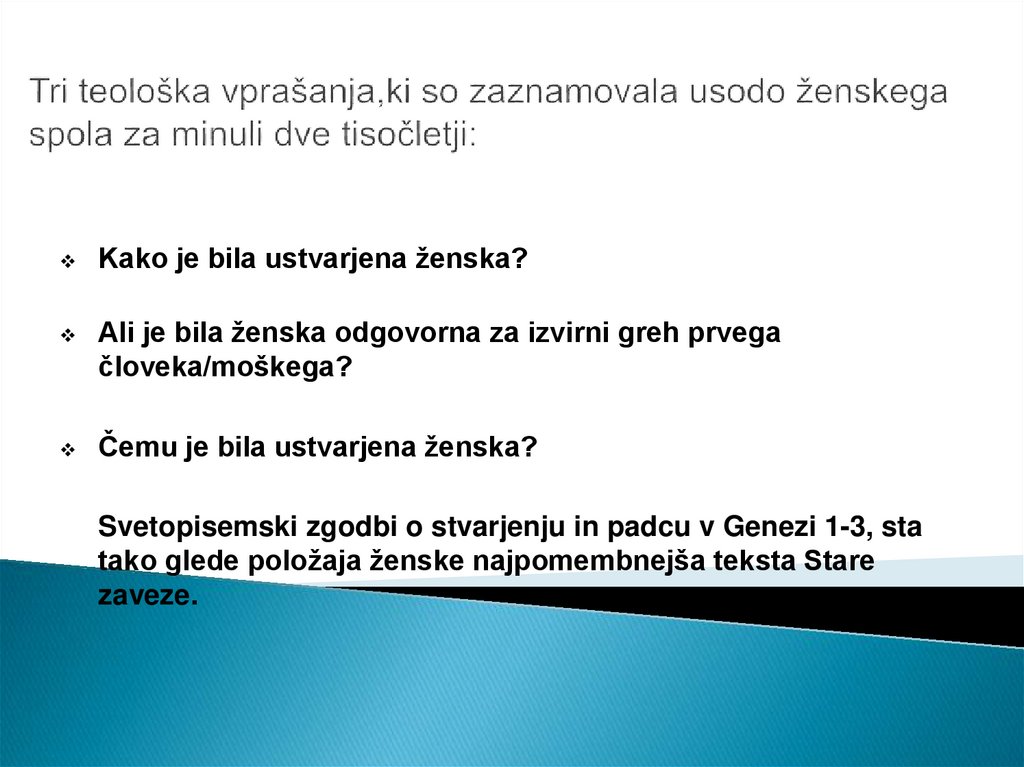 Tretjič: da ženska ni bila ustvarjena samo iz moškega, ampak tudi za