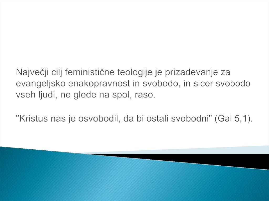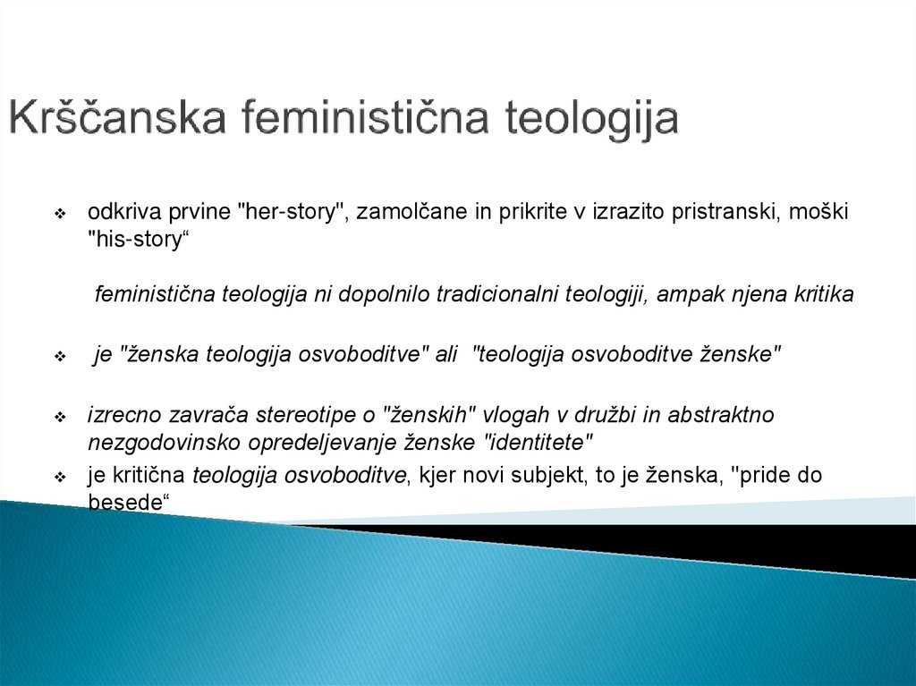 feministična teologija ni dopolnilo tradicionalni teologiji, ampak njena kritika
