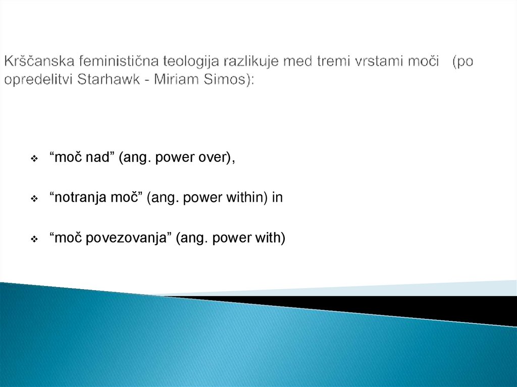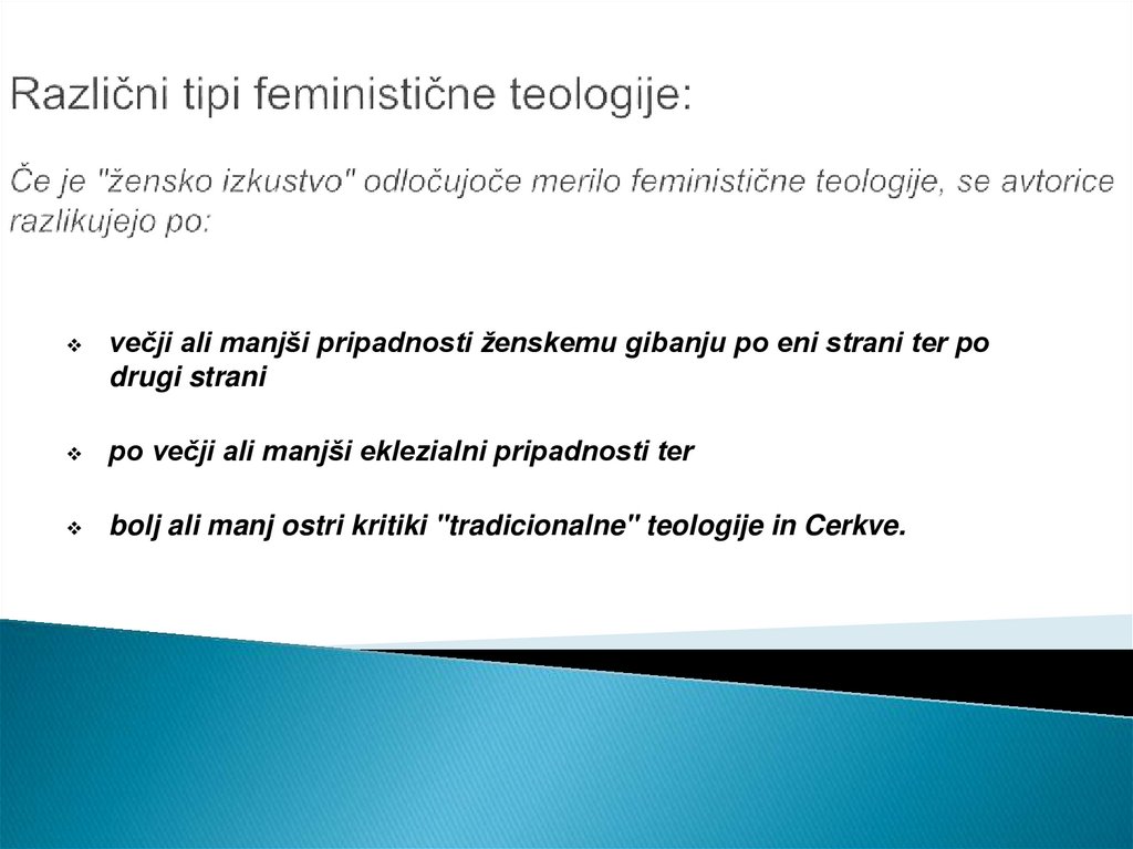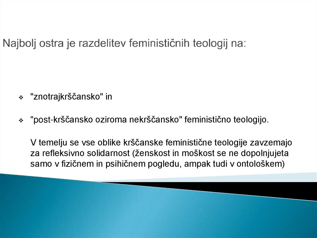 "znotrajkrščansko" in"post-krščansko oziroma nekrščansko" feministično teologijo.