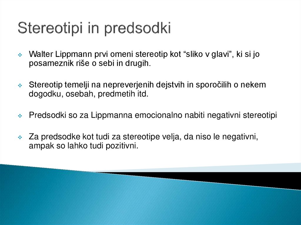 Predsodki so za Lippmanna emocionalno nabiti negativni stereotipi
