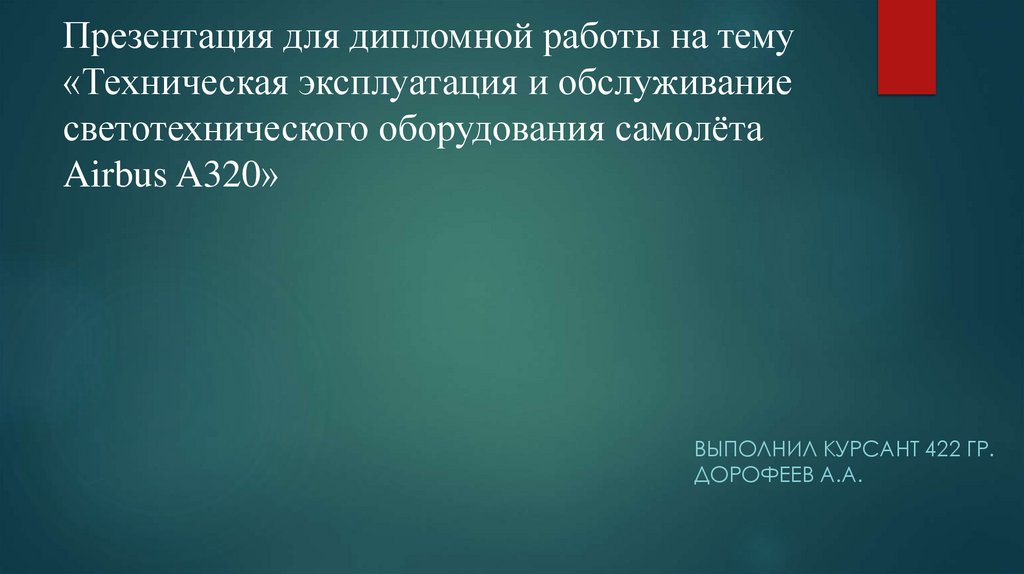 1. Презентация для дипломной работы на тему «Техническая эксплуатация и обслуживание светотехнического оборудования самолёта