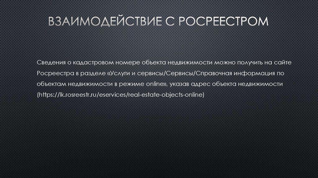 объектам недвижимости в режиме online», указав адрес объекта недвижимости
