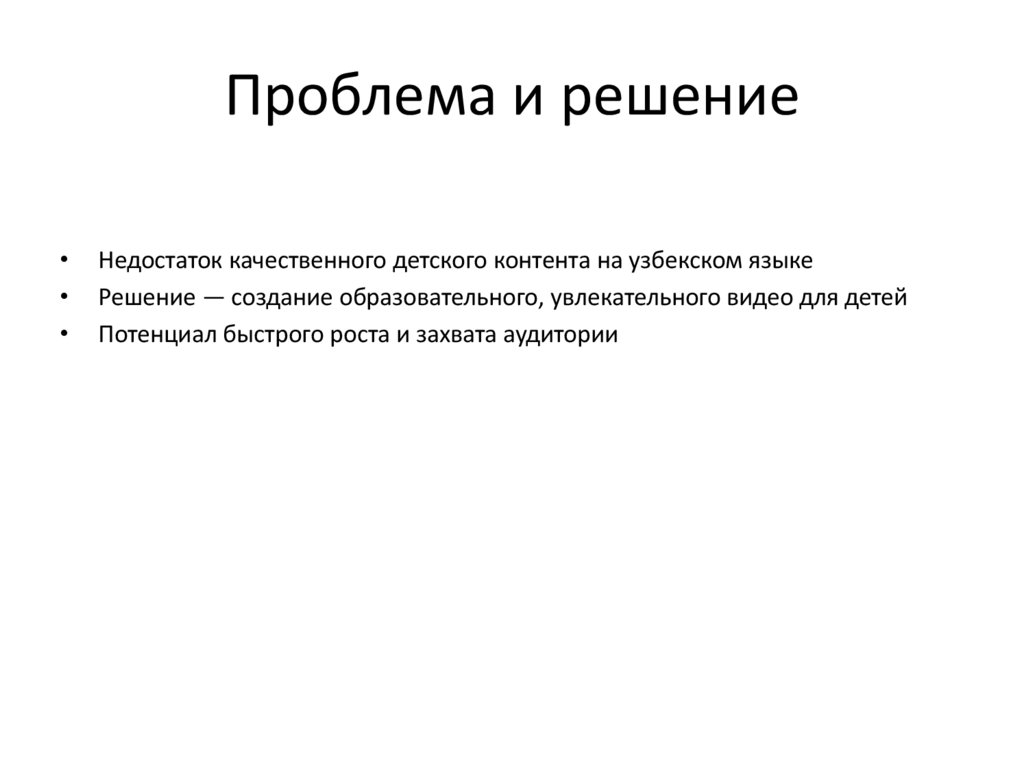 Проблема и решениеНедостаток качественного детского контента на узбекском языке