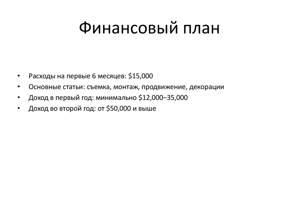Финансовый планРасходы на первые 6 месяцев: $15,000