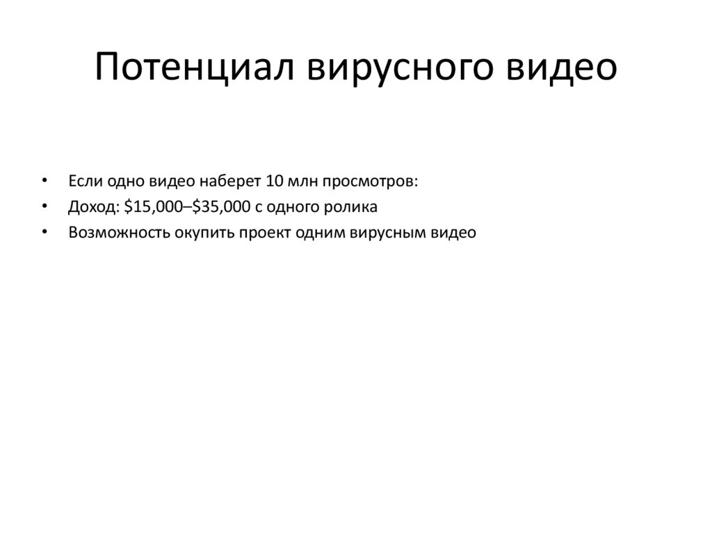 Потенциал вирусного видеоЕсли одно видео наберет 10 млн просмотров: