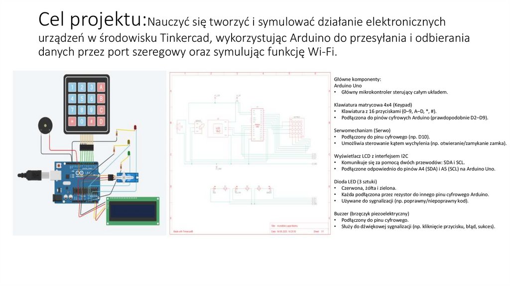 Cel projektu:Nauczyć się tworzyć i symulować działanie elektronicznychurządzeń w środowisku Tinkercad, wykorzystując Arduino do przesyłania i odbierania
