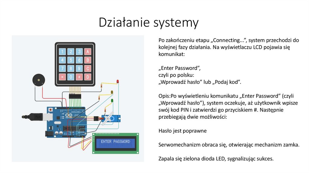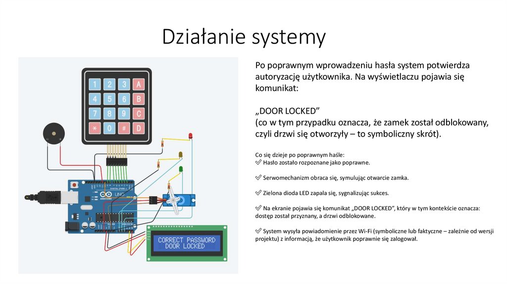 Działanie systemyPo poprawnym wprowadzeniu hasła system potwierdza