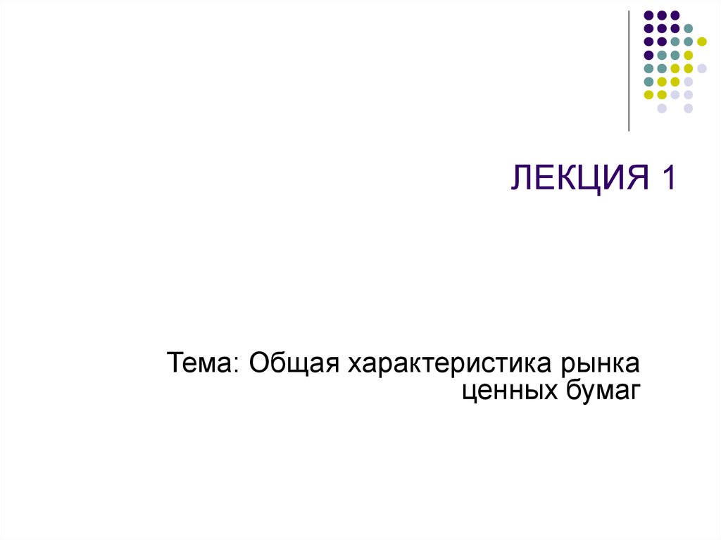 Тема: Общая характеристика рынкаценных бумаг