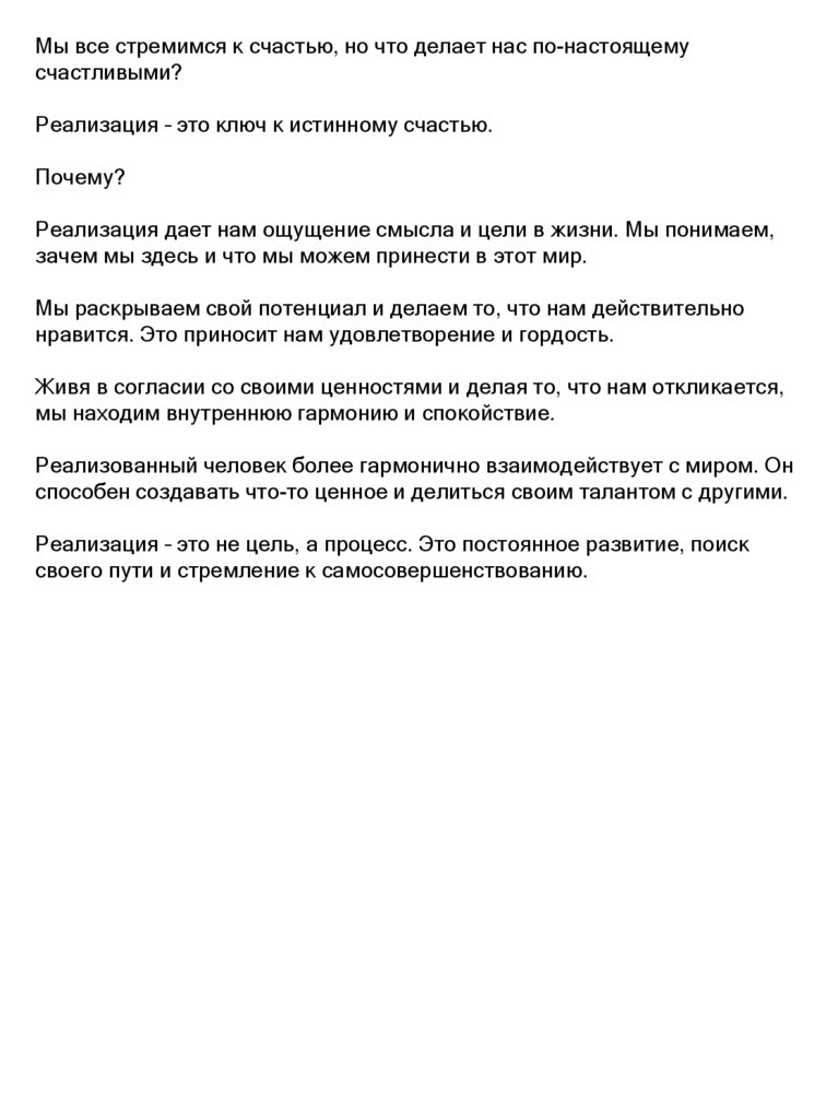 Реализация дает нам ощущение смысла и цели в жизни. Мы понимаем,
