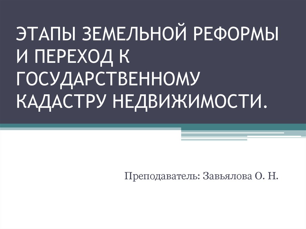 1. ЭТАПЫ ЗЕМЕЛЬНОЙ РЕФОРМЫ И ПЕРЕХОД К ГОСУДАРСТВЕННОМУ КАДАСТРУ НЕДВИЖИМОСТИ.