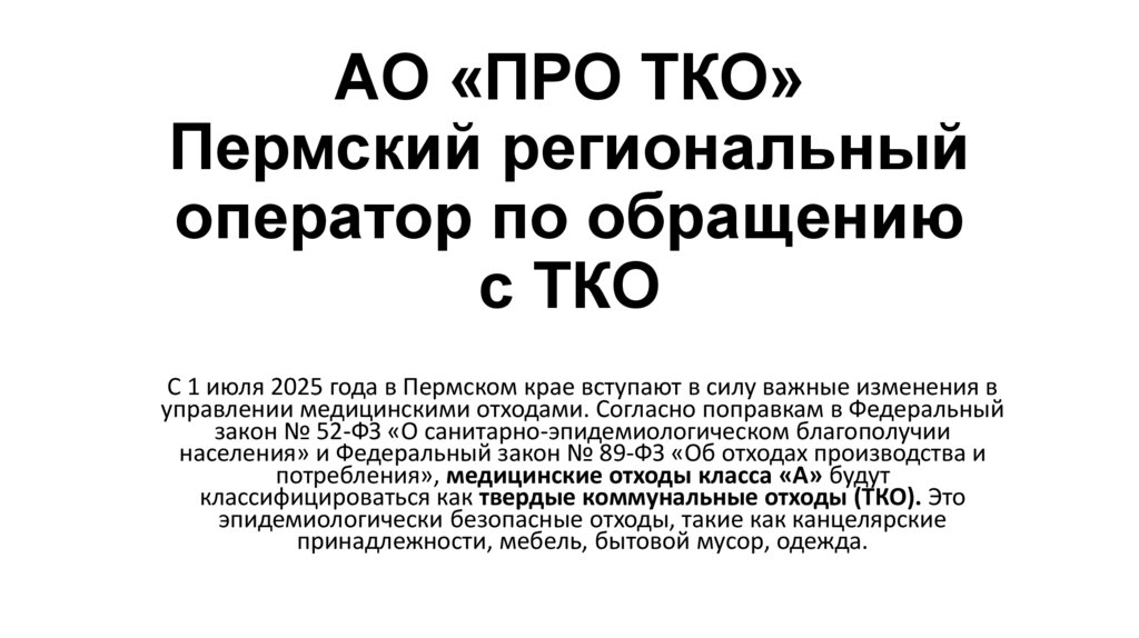 1. АО «ПРО ТКО» Пермский региональный оператор по обращению с ТКО