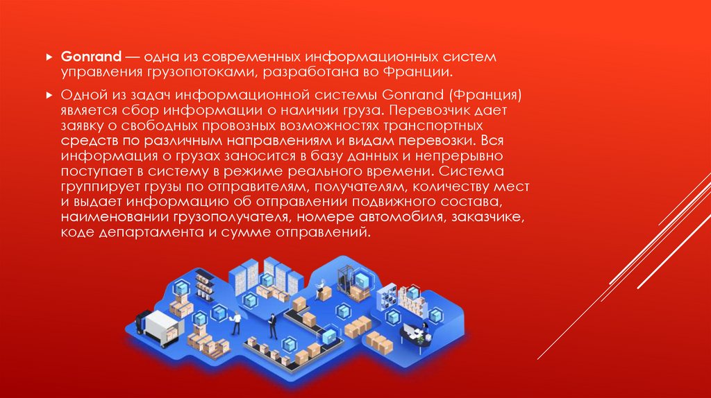 Gonrand — одна из современных информационных системуправления грузопотоками, разработана во Франции.