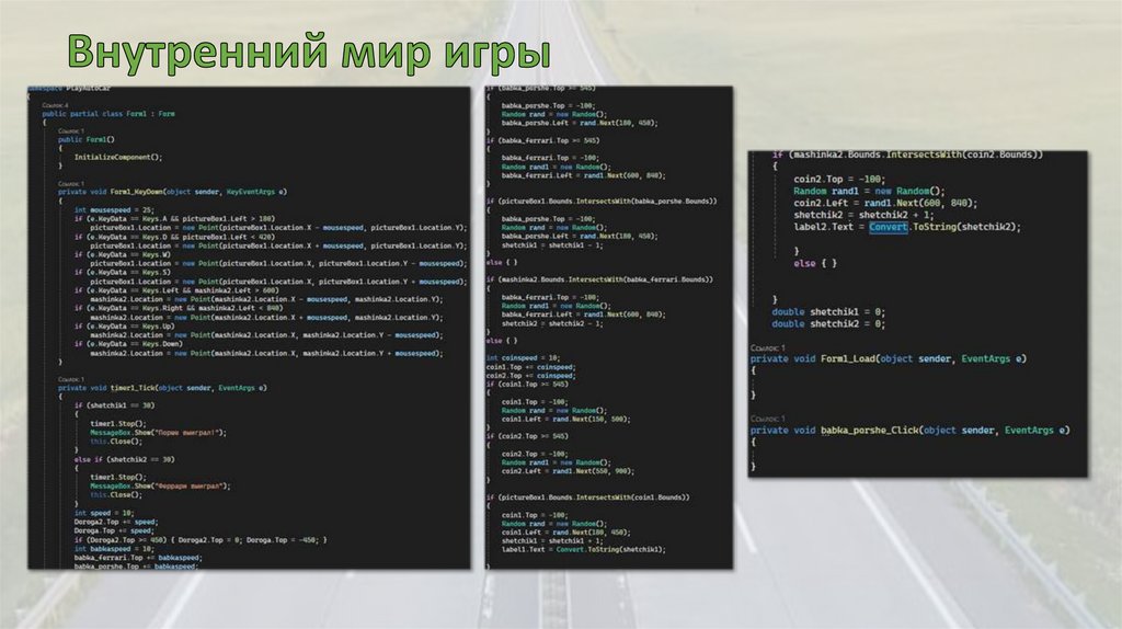 функций (движение, столкновения, счётчики).