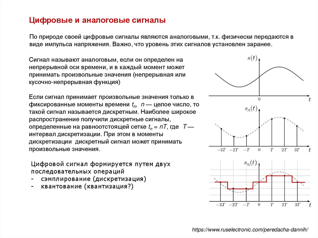 Цифровые и аналоговые сигналыПо природе своей цифровые сигналы являются аналоговыми, т.к. физически передаются в