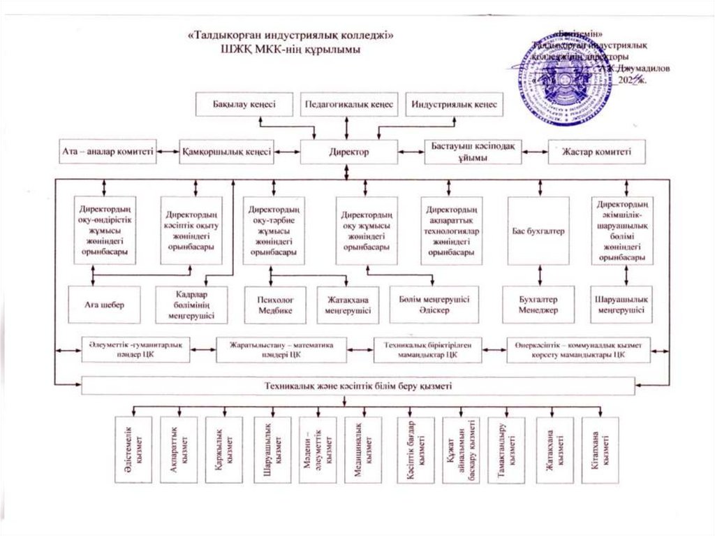 «Талдыкорган индустриялык коледжі» ШЖК МКК-нін курылымы