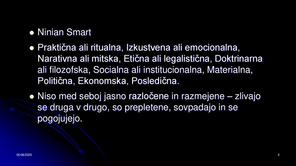 „Izkustva in čustva: hrana, od katere živijo druge religijskerazsežnosti“ (N. Smart)